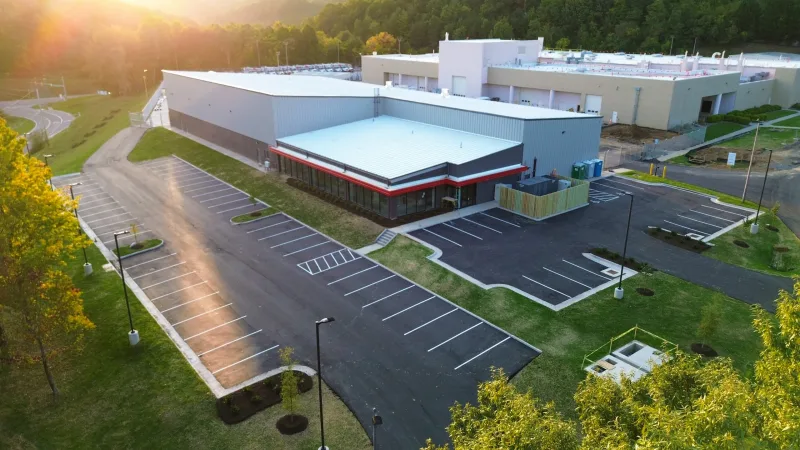A new 25,000 square foot pre-engineered metal building with integrated office areas and a truck garage addition, featuring enhanced exterior elements, coordinated brick accents, and storefront windows.